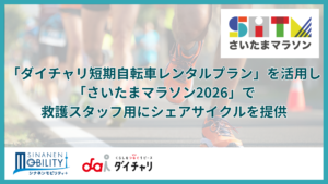 エネルギー・住まい・暮らしの総合サービス事業を展開するシナネンホールディングス株式会社(本社:東京都品川区、代表取締役社長:中込 太郎)の子会社で、移動を楽しく、快適にするシェアサイクル「ダイチャリ」を運営するシナネンモビリティPLUS株式会社(本社:東京都品川区、代表取締役社長:菅原 健)は、2月8日(日)に開催される『さいたまマラソン2026』(主催:さいたま市、一般社団法人さいたまスポーツコミッション、一般財団法人埼玉陸上競技協会)に、「ダイチャリ短期自転車レンタルプラン」(以下 本プラン)の仕組みを活用したシェアサイクルの貸し出しを行い、救護スタッフの移動手段確保に協力いたします。